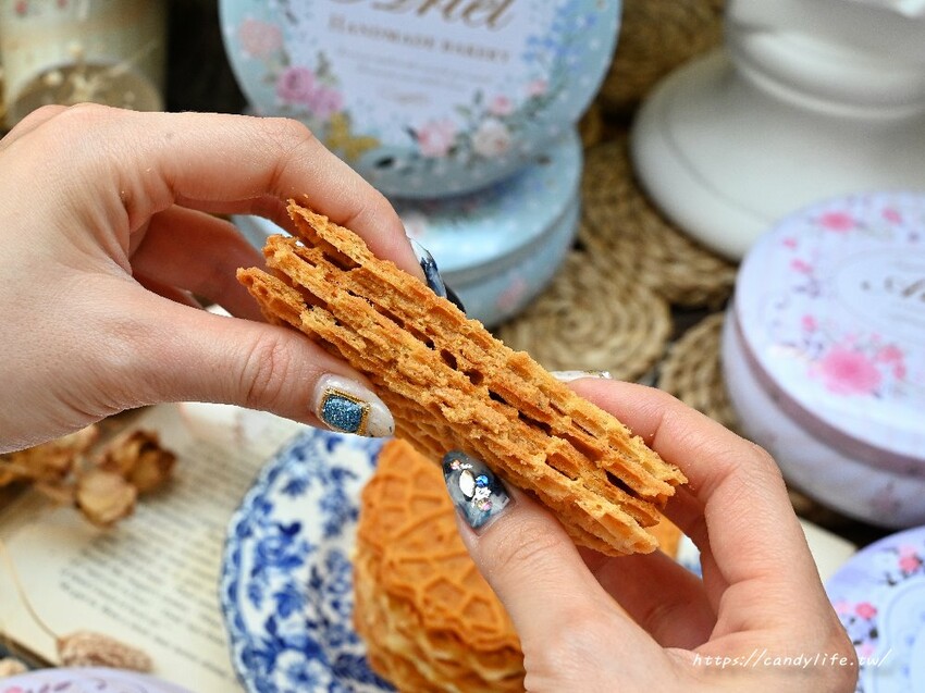 台中伴手禮推薦,質感又好吃得手工蕾絲餅,香甜不膩,內餡還會牽絲,包裝精緻,送禮相宜,現在還有實體店面,每天限定一種口味,現場還有手工蕾絲餅免費試吃,加上質感裝潢及夢幻玻璃屋,網美們必訪~