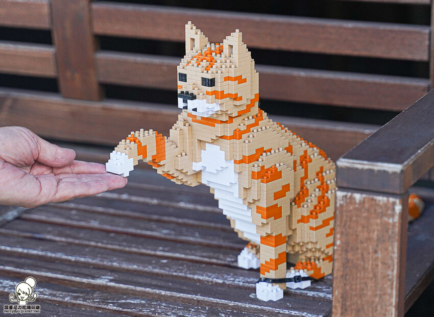 門口就有可愛的貓咪積木所製作的公仔,太可愛療癒了!