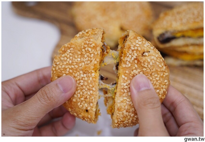 台灣Q餅上面有滿滿的芝麻,一拿出來就覺得很香,整體層次也很豐富,吃起來不油不甜膩