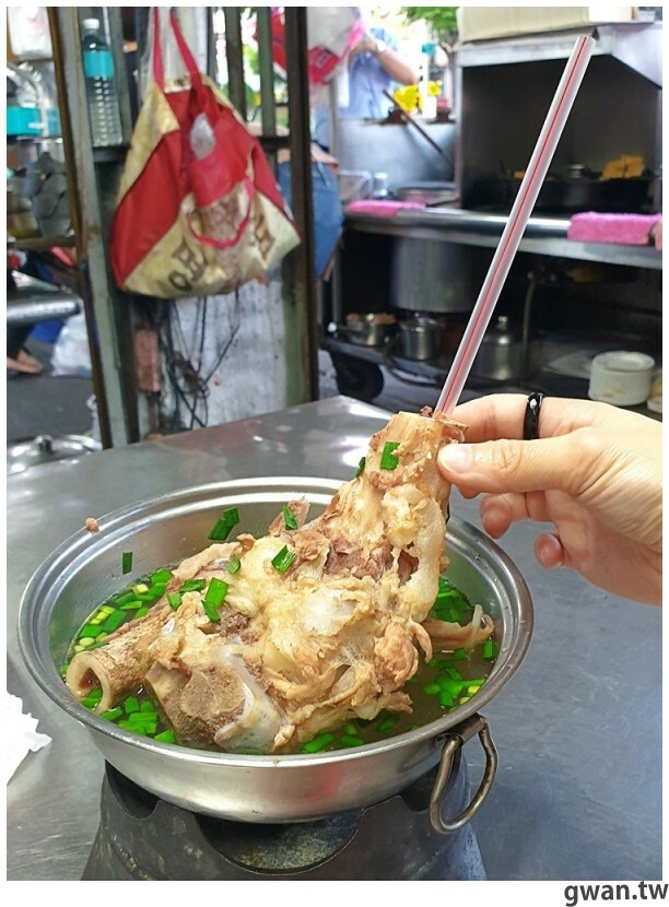 我最期待的是大骨湯,現在外面很少看到這種整隻大骨的大骨湯,而且份量是直接一小鍋端出來,底下還有爐火在加熱