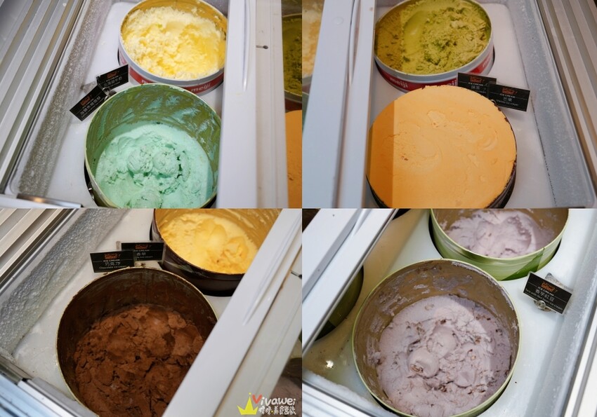 ▲店家的冰淇淋一共有七種口味~有北海道牛奶、海鹽焦糖雪酥、抹茶、芒果、巧克力、香草、香芋紅豆!