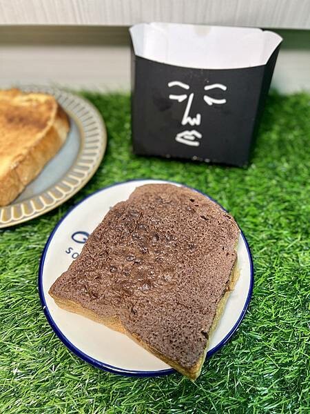 柔軟的生吐司上,抹著厚厚的一層奶酥,