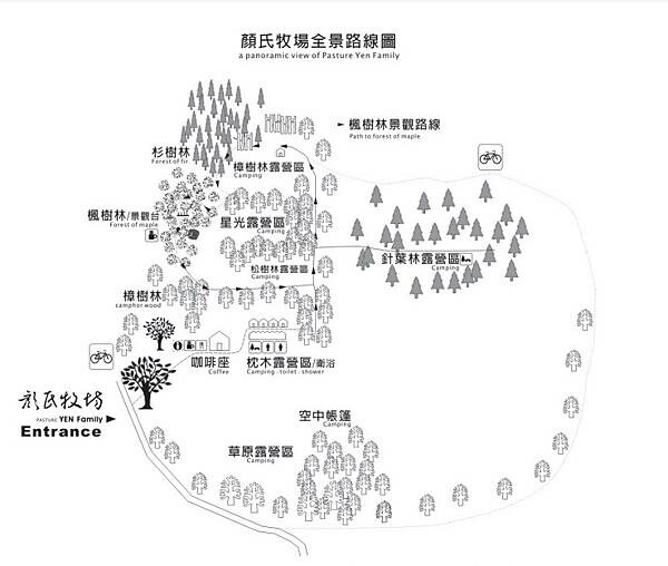 除了針葉林區還有松樹林、星光露營區、樟樹林及楓樹林
