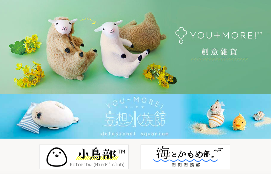 YOU+MORE!的商品不少都是以動物為主題的品項,像是水族館系列的水獺、海豹、企鵝,還有狐狸、狸貓、小倉鼠為主角的逗趣生活雜貨商品,真的光看心情就會很好耶!
