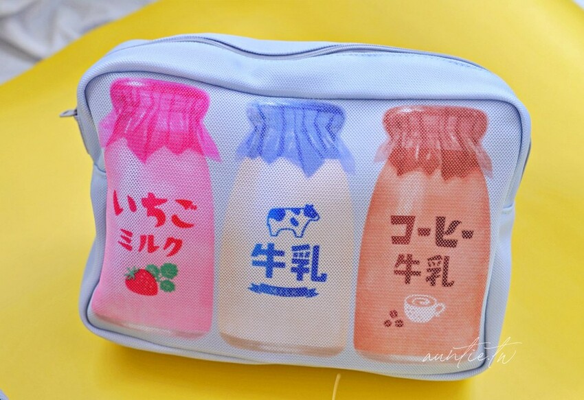 旅遊外出很適合,有點復古的錢湯牛奶罐圖案,這次光放薄的t-shirt就可以放到四五件,長25.5 cm 寬17 cm,放衣物剛剛好,而且重點是可以直接當成內衣的洗衣袋,直接丟洗衣機洗就可以,真的超方便!