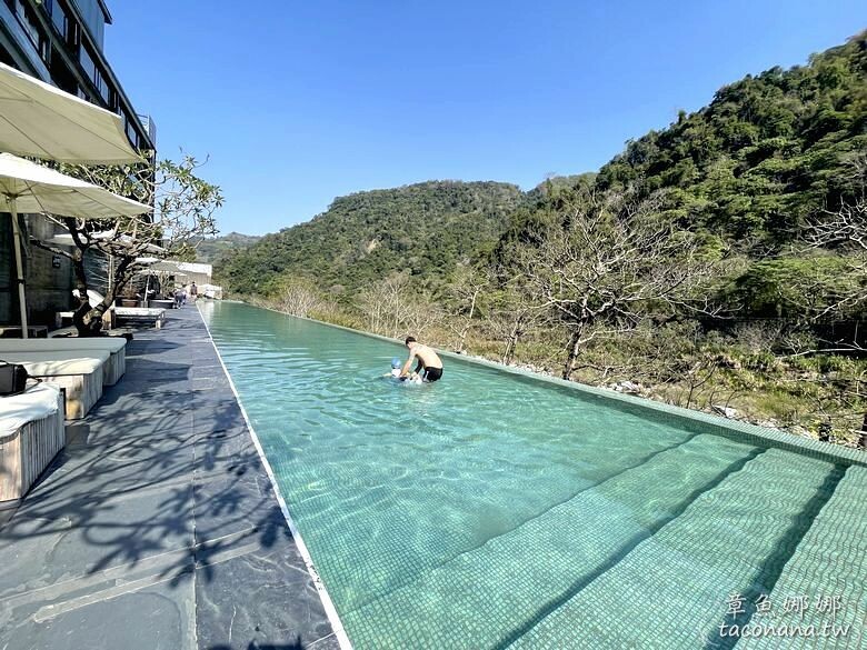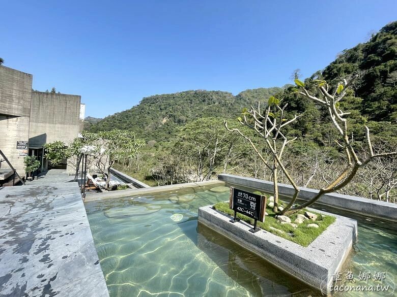 其中最吸引我們的就是這清水模建築與一旁的自然景觀,建築巧妙與自然景觀融合,尤其是65公尺的鏡面泳池,完全是國外渡假FU!設施上:戶外泳池、戶外湯區、室內溫泉、裸湯,都很建議不要錯過!