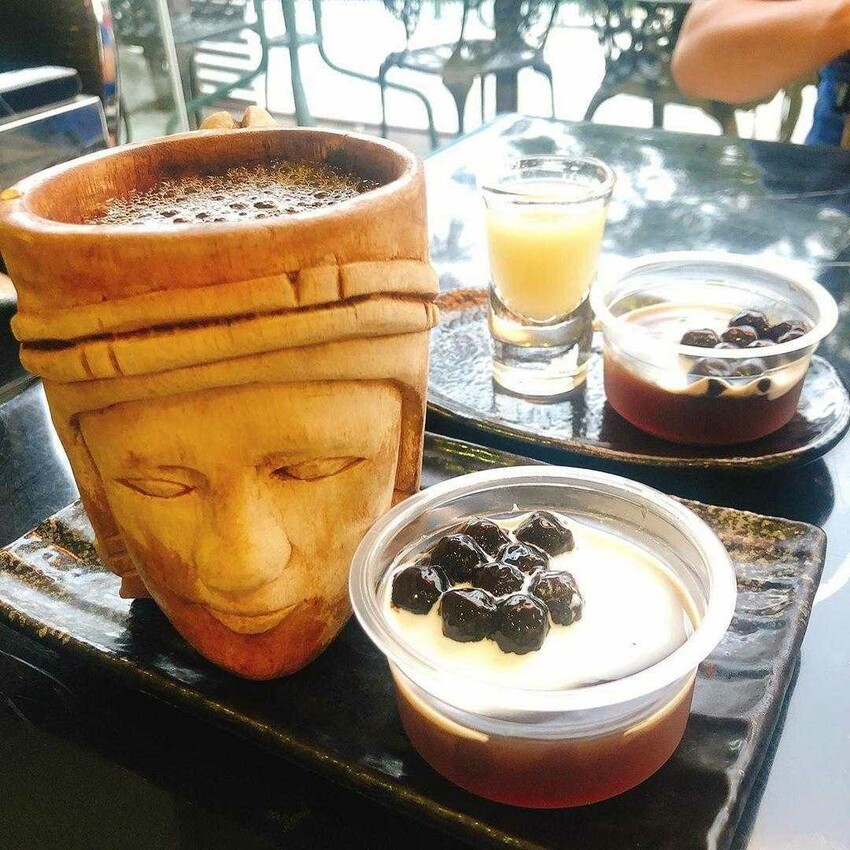 吃完風味餐後,再來上一杯冰涼飲品,日月潭台茶18或小米酒,搭配阿薩姆紅茶凍,飲品特別用邵族人臉雕刻木杯裝著,而紅茶凍上還放上QQ的珍珠。不僅主餐連飯後甜點都不容馬虎,讓每一位旅客可花上大半天在這享受美好午後時光。