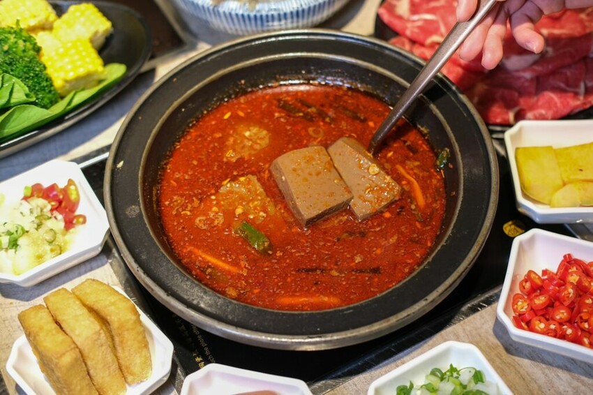 ▼湯頭入口首先是帶勁的麻香,隨之而來是強烈的辣勁,辣度約為中辣程度,搭配滑嫩入味的鴨血很過癮~