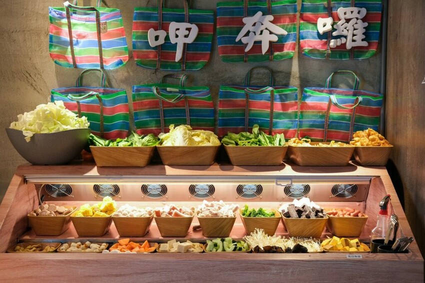 【狂一鍋】共有11款台式爆炒湯底,融合台菜和火鍋超特別的特色,同時會隨著活動不定期推出新口味,可以任意選擇喜好的肉品海鮮搭配,從天使紅蝦到經典和牛都能吃到,每人點選套餐或是共鍋加價199元,即可享用自助吧無限吃到飽。