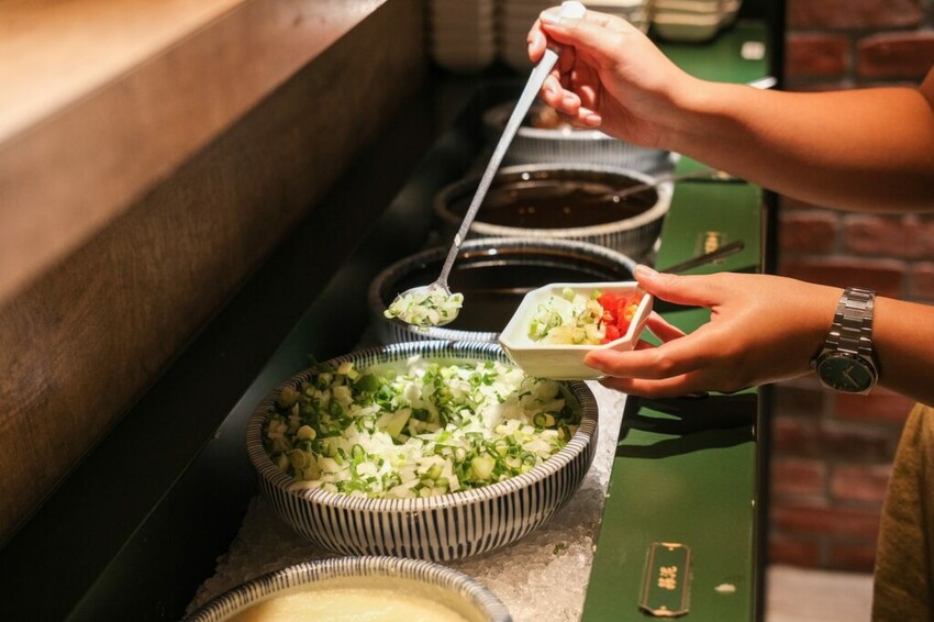 ▼醬料區備有基本六款辛香料、佐料可依照個人口味喜好調製。