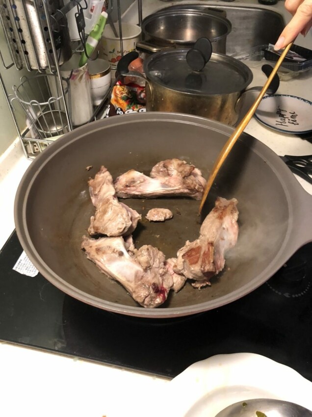 放油鍋中香煎,要等待20分鐘左右肉質才會全熟