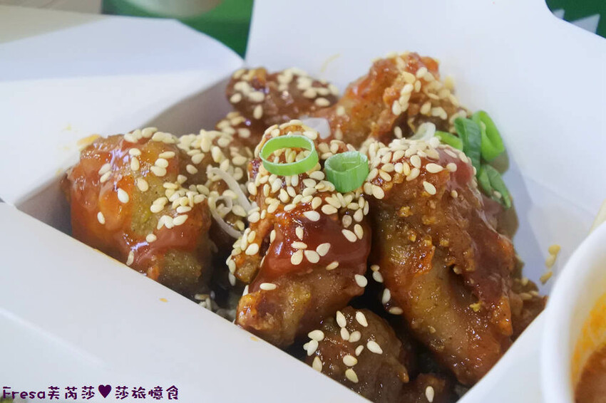 韓國炸雞都是一盒一盒盛裝,沒吃完立刻蓋盒帶走很方便.