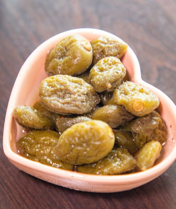 水蜜桃小朋友,說是沒長大掉下來的水蜜桃,或是比較小的水蜜桃用糖醃漬,吃起來就像一般的蜜餞,脆脆甜甜的。
