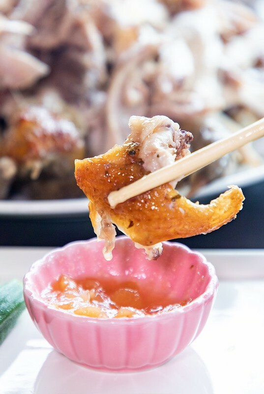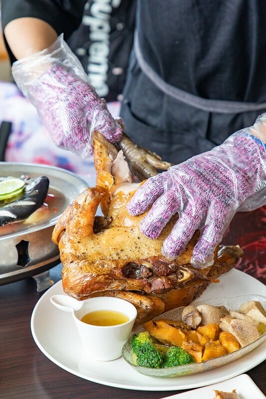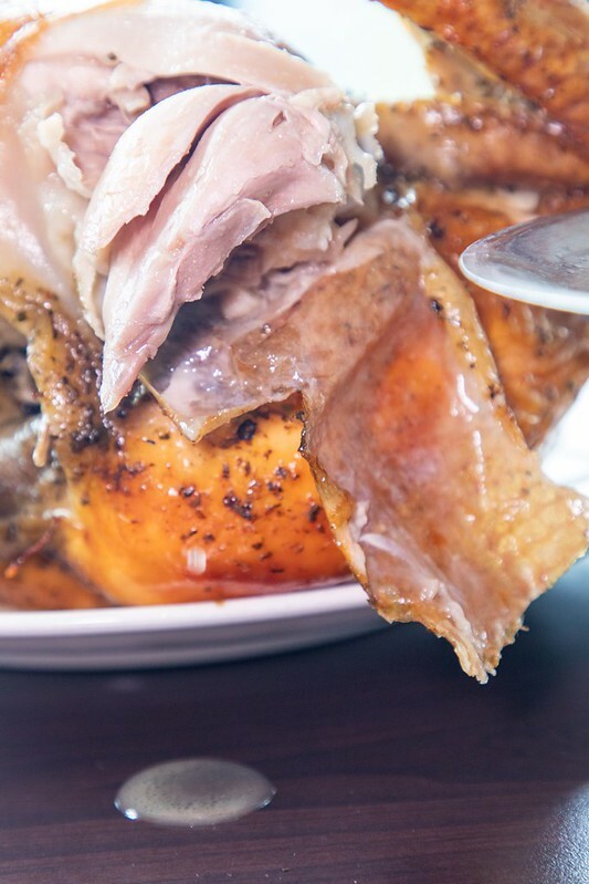 剝完後那油還一直隨著雞皮和皮下的油質往下滴,這雞皮雖然不厚但真的又油又甜又香,好吃得亂七八糟,沾上附上的烤雞油更是油甜得一踏糊塗,難得的是雞肉也非常軟嫩,真的無愧招牌二字。