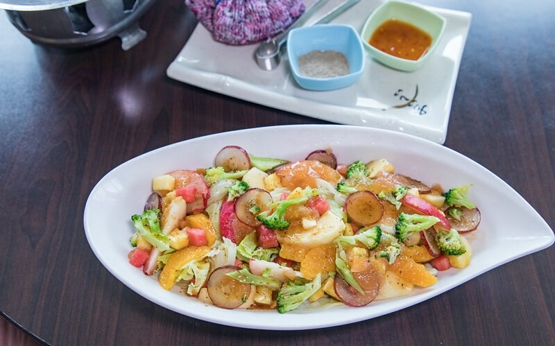拉拉人嘉美食莊假日時以團餐為主,但有2人到10人的多種合菜選擇,我們享用的是需要一星期前預訂的季節限水蜜桃大餐,包含以下八道料理: