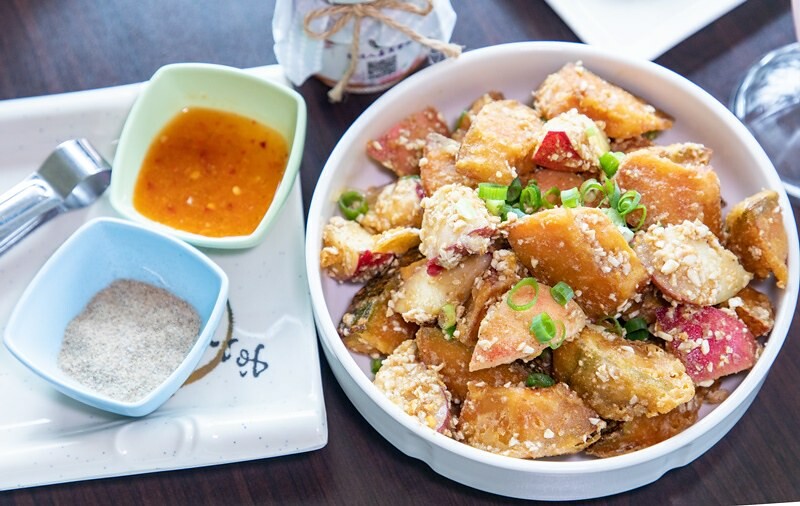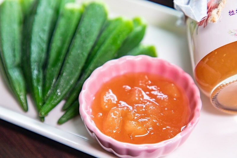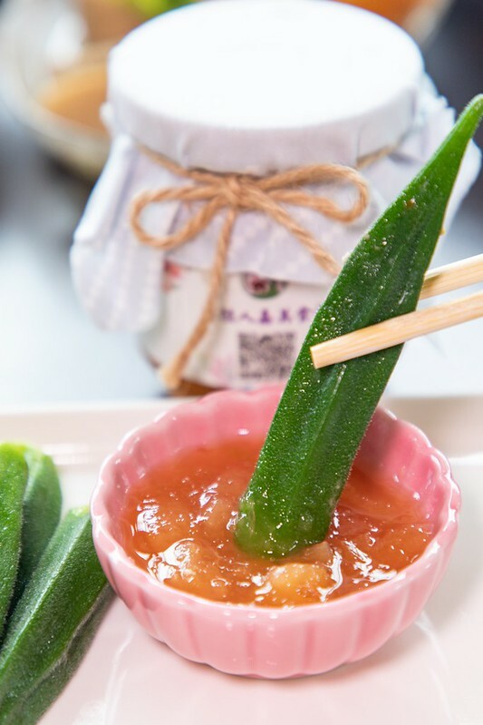 蜜桃醬秋葵,如果你不敢吃秋葵,來這請再給它一次機會,沾著蜜桃醬可是讓本來不敢吃秋葵的友人都大讚好吃。順便說一下的是這水蜜桃醬單吃略為偏甜,但搭上料理卻渾然天成,也許買一瓶回家抹土司試試。查了一下1瓶250元,一次購買6瓶以上每瓶200元。