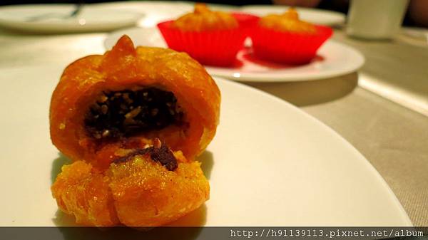 !內餡是帶些白芝麻的紅豆沙 ~ 甜度適中 ~ 加上酥脆的外皮.....完全戳中我的點呀