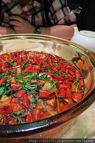 剛端來時 ~ 我有被嚇到.....為滿滿的辣椒.....看起來辣恐怖的OAO .....