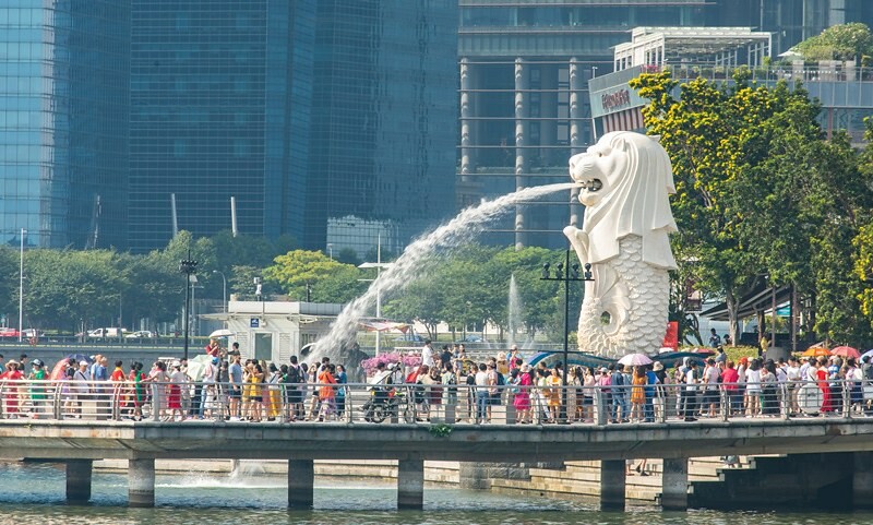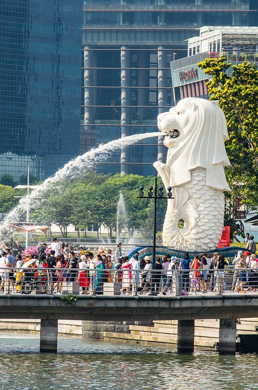 值得一提的是新加坡全境共有七座魚尾獅雕像,最著名的一大一小兩座位於現在的魚尾獅公園內,如今些畫面也幾乎同等於新加坡。