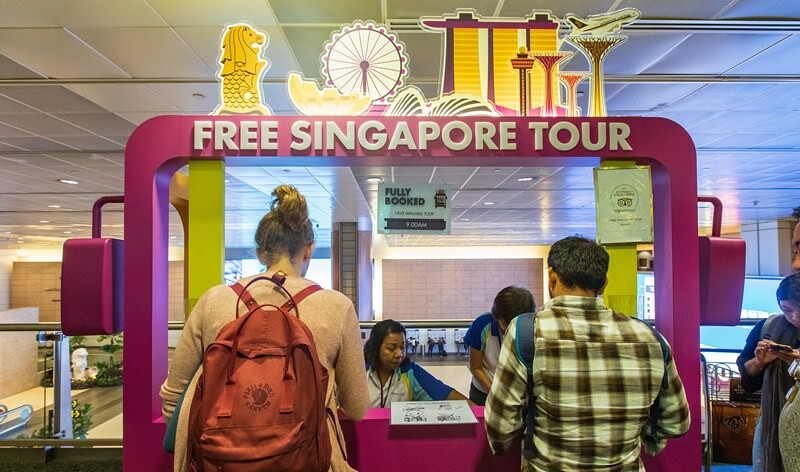 只要你在新加坡樟宜機場需要等待超過5小時的轉機時間,就可以免費享受新加坡境內的2小時免費之旅,辦理的櫃檯就在樟宜機場第二航廈,北入境大廳的手扶梯附近以及北轉機大廳二樓的Skytrain停靠站 (鄰近轉機候機室E),另外第三航廈也有一個櫃檯在轉機候機室B旁邊。參加的遊客請準備好,護照、機票、簽證(台灣30天觀光免簽證)。每天有四個時段分別是08:00、10:30、13:30、14:30,但請記得轉機時間需在結束行程時間的兩小時後,比如說我們參加的08:00行程是在09:00-11:00間,那麼你的轉機時間就必需是在13:00之後的班機才能申請,每位參加者都有一個張貼紙,以供機場快速出關,及行程結束後回到機場之用。