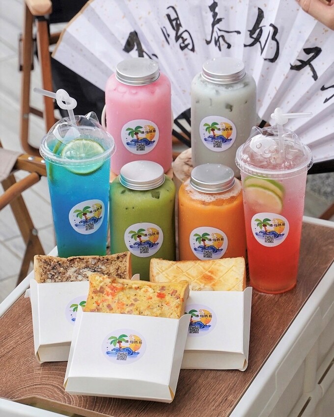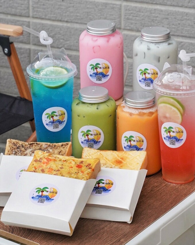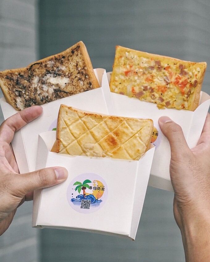 泰個奶熊除了販售11種不同口味泰式飲品、超美漸層氣泡飲之外,更還有各式特色口味的手作厚片吐司可以選擇。