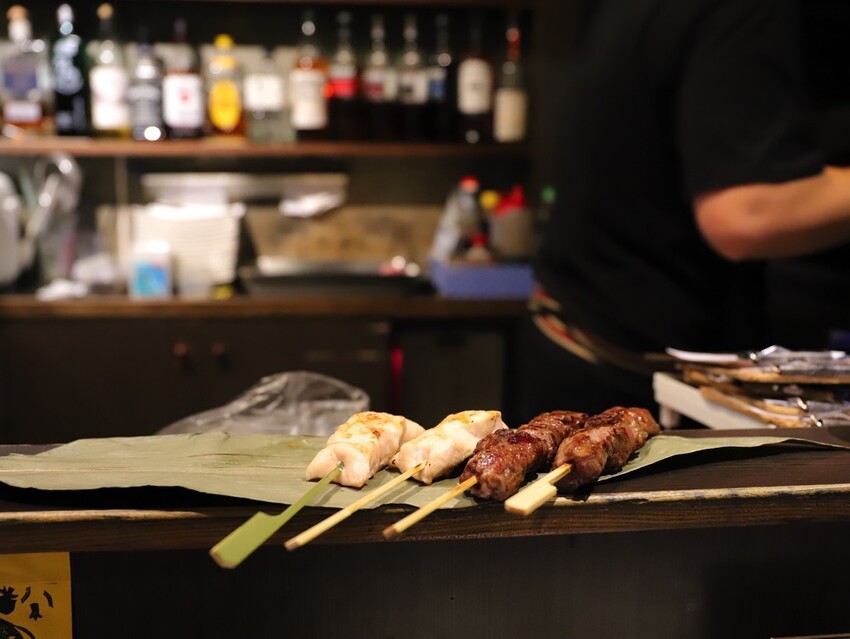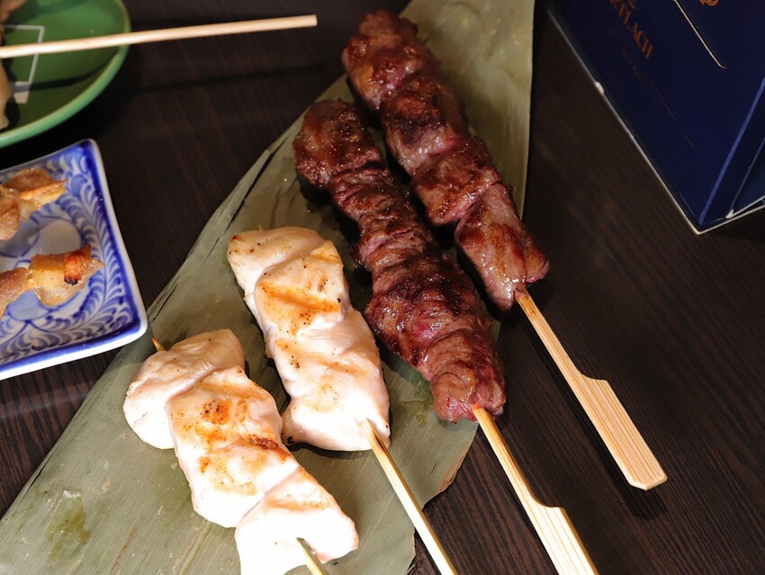你的串燒也會用粽葉的方式擺盤、直接放在你前方的吧台,