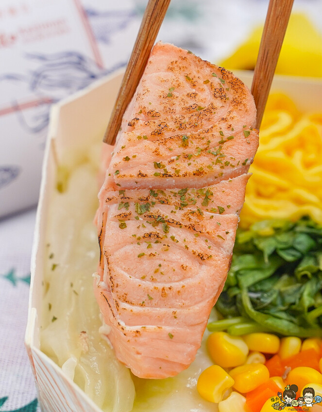 一看到聯名新推出的 海自慢 x 健人餐廚 親子鮭魚健康餐盒,力馬手刀買來嚐鮮,果然好吃