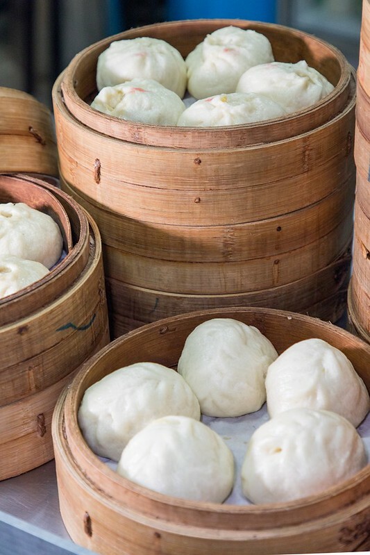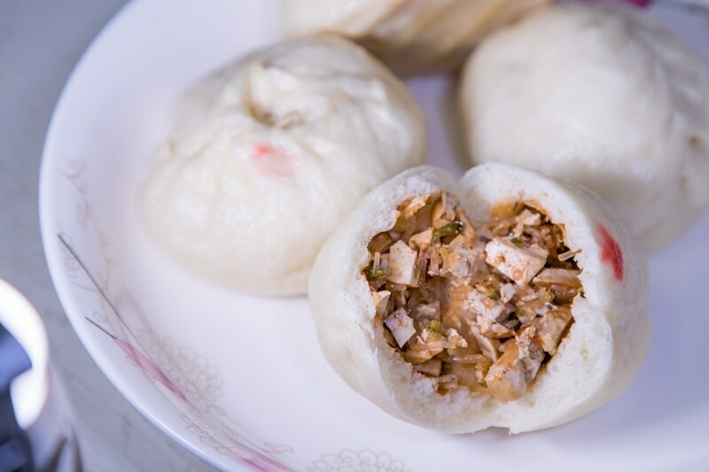 這裡的手工包子談不上好看,但這也是純手工的證明,每籠五個,於是剩四的四種口味各買了一籠。