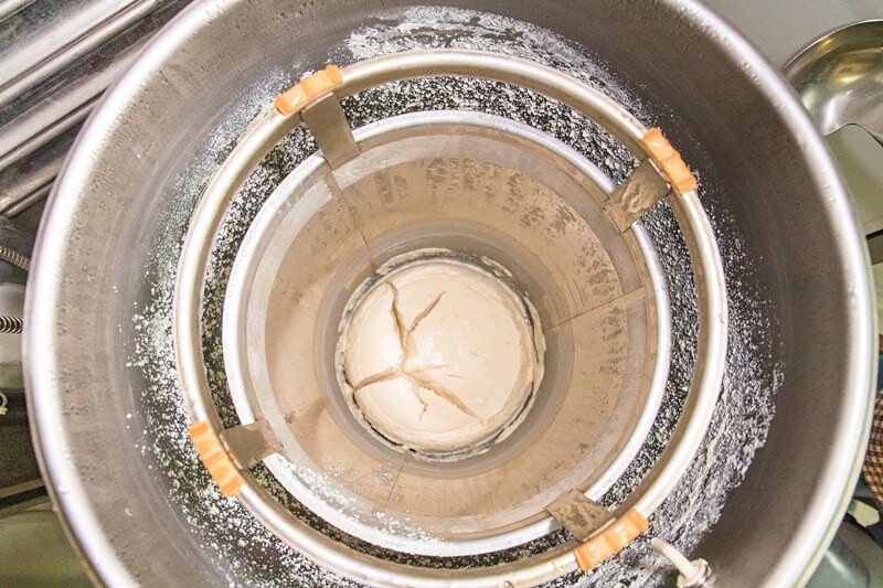老闆還打開製豆漿機給我看,說這一台要十幾萬,原來渣完豆漿的豆渣是這等模樣,好像起司哦xd