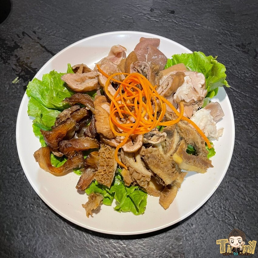這樣的熟度才能感受到它的軟嫩及油花甘甜在嘴巴化開的爽度,當然跟麻辣湯頭這個好朋友搭配,藥膳的甘甜也引出牛肉更多的甜味,不沾醬吃原味就很棒了