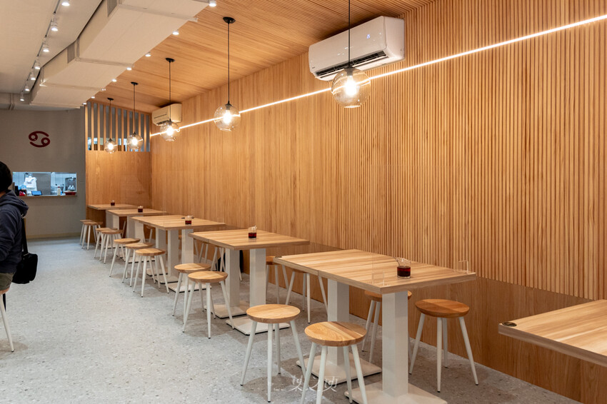 視覺上相當通透的木格柵一路延伸進店內空間,室內客座區很寬敞,選用的桌椅也都是以木造質地搭配純白色,打造出優雅舒適的內用空間,看起來相當有質感。