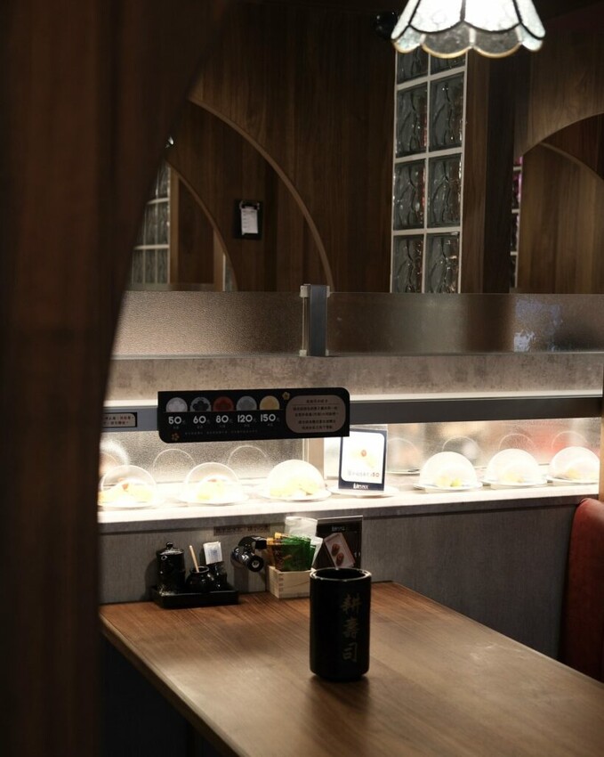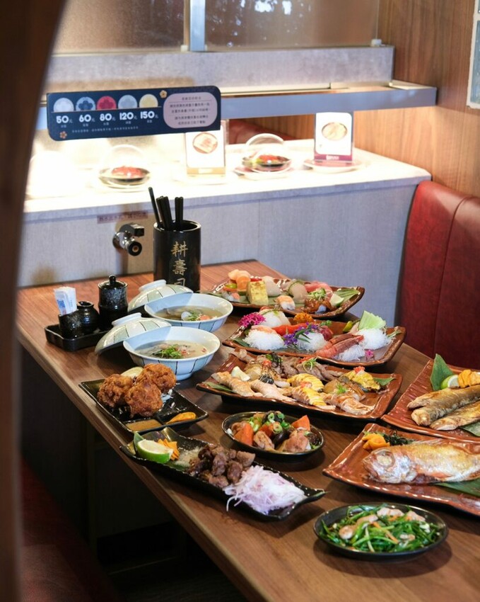 ▼【耕place】以迴轉壽司搭配平板點選的模式,壽司盤以顏色區分價位,想吃什麼看到都能自己拿,並且以台新幹線造型幫忙送餐,為用餐體驗多了一股趣味感 ~