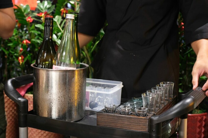 ▼充滿著酒館微醺氛圍的【耕place】,門口櫃檯旁的擺放了許多日本酒,品名和價位都明確標示在旁邊,服務人員會協助倒杯介紹風味,蠻推薦可以搭配餐點小酌一下。