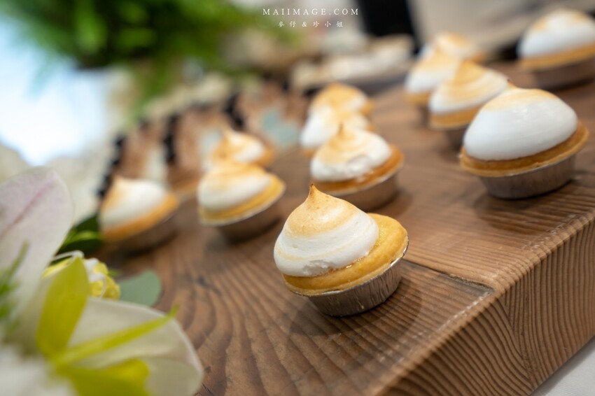 如果喜歡吃甜點,這天的栗子塔、蛋白霜檸檬塔表現都很棒,光是這造型就給讚,栗子塔香氣濃郁,甜而不膩一口一個配茶更對味,蛋白霜檸檬塔口味爽口上面的蛋白霜口感綿滑好討喜,需要經過低溫烘烤費時製作,才能有這樣的口感,這款甜點大人小孩都會愛啊。