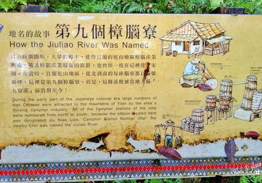 日治時期,宜蘭山區曾經以盛行樟腦產業,當時多座砍伐樟腦樹的工寮,這裡是第九個腦寮,所以此溪就稱為「九寮溪」。而這一帶的泰雅人稱之「戈霸溪」,閩南及客家人稱之為「破礑溪」