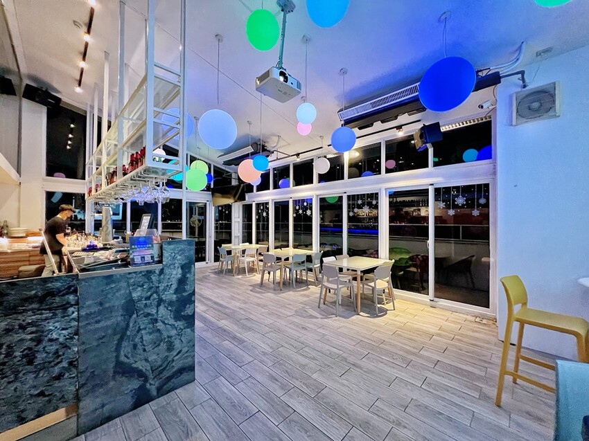 位在虎尾春秋的10樓,假日入住在會提供免費兌換飲品券供使用。來到10樓可到戶外露台上賞雲林虎尾的夜景,還可以看到圓環的裝置藝術-素還真,晚上可以會打燈。