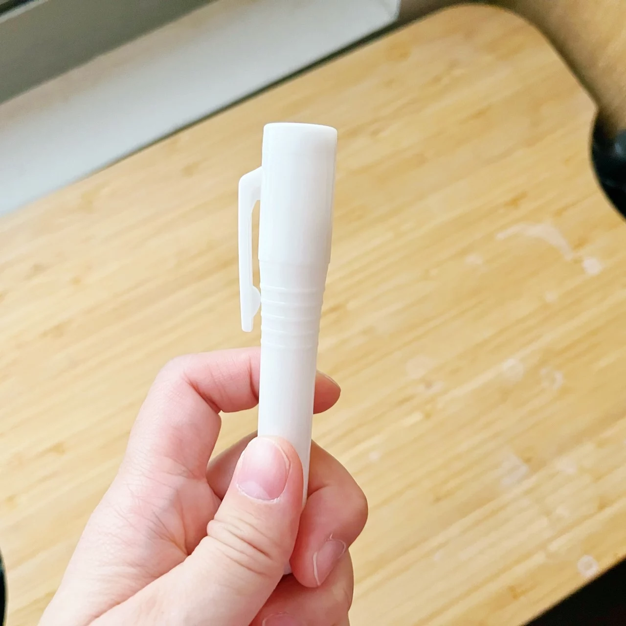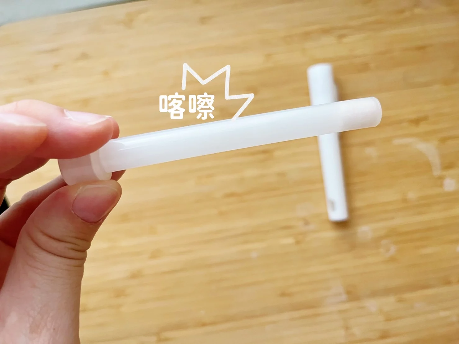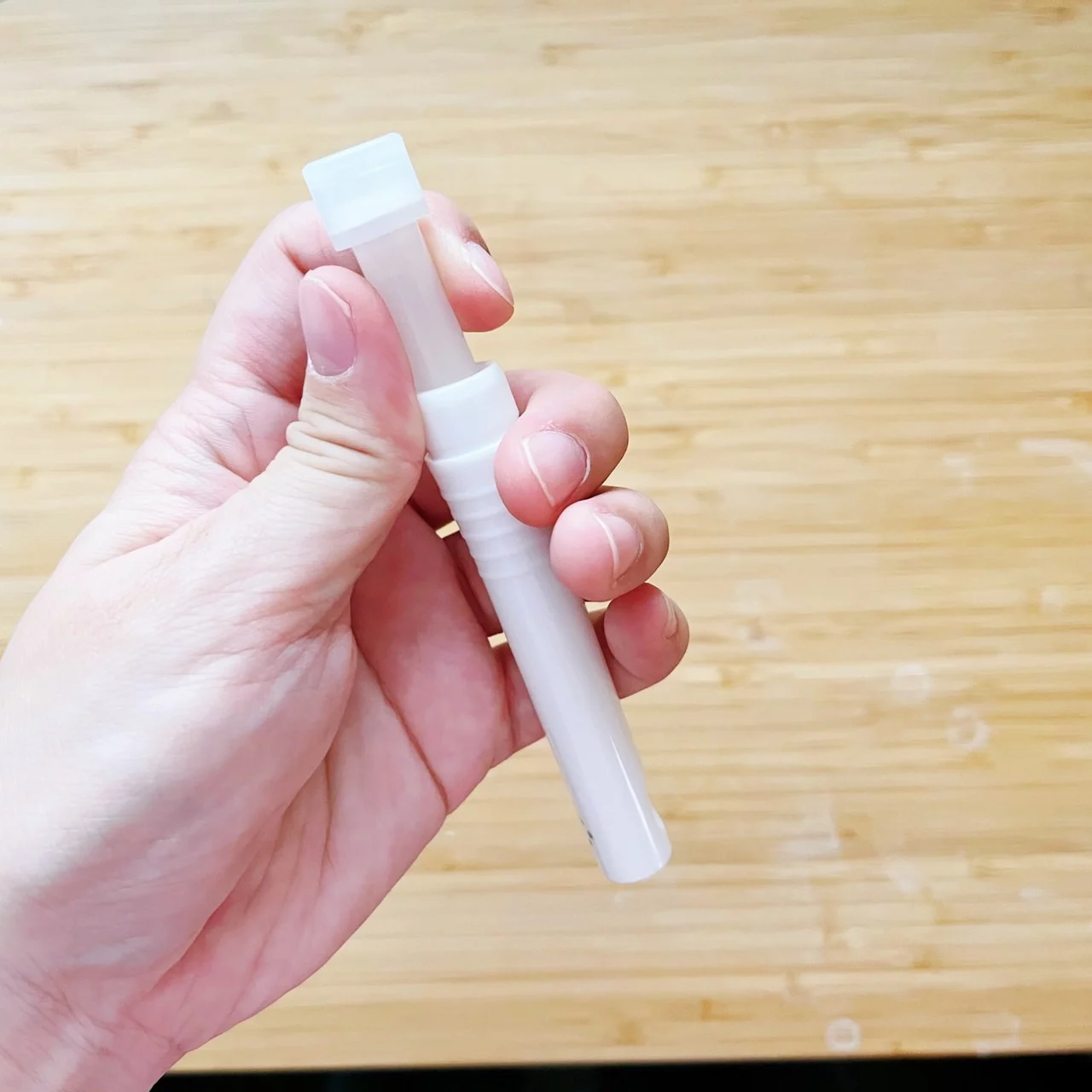 跟置放型不同,筆型更簡單,不用有東西要倒入容器的動作,直接像迷妹折螢光棒一樣,將筆芯往中間一折直到有聽到喀擦的一聲,就是完成開啟。