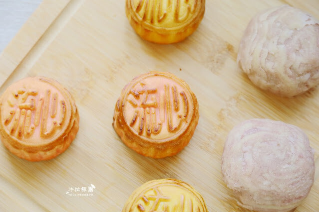 拆開小包裝後,發現"流心三部曲"月餅的顏色好美喔~~
