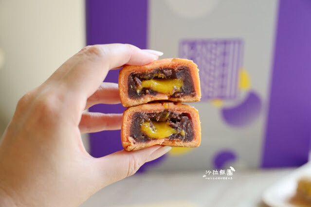 紅豆加上流心蛋黃,減糖的配方,從餅皮到紅豆內餡、流心內餡,吃起來鹹甜鹹甜,一點都不膩口