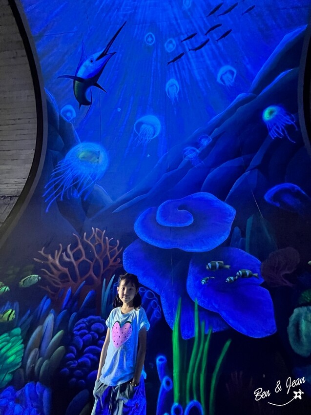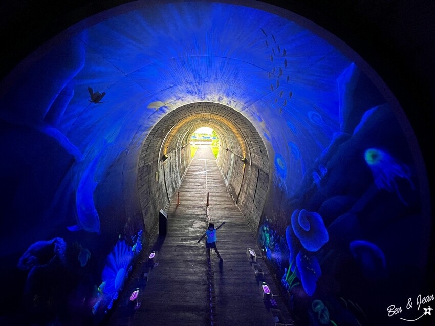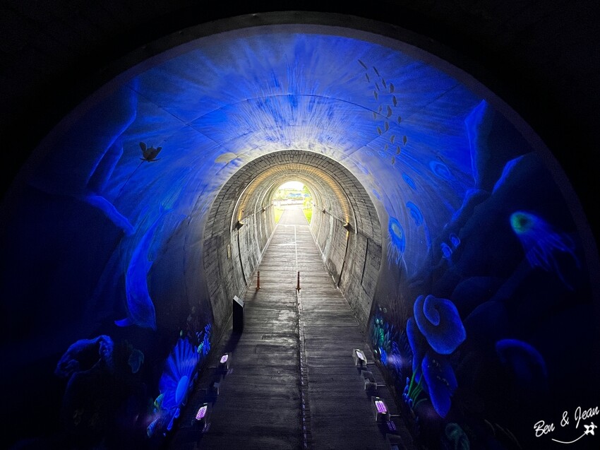 隧道內最受矚目的海洋彩繪牆,每天上午9點到晚上9點,每30分鐘會點亮10分鐘