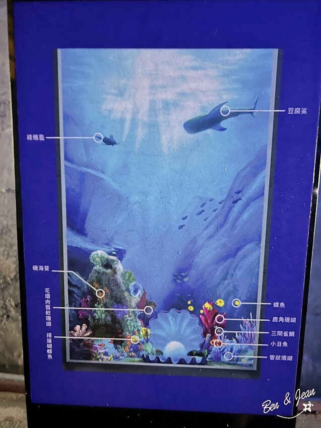 牆上繪有水母、海豚、貝殼、珊瑚、豆腐鯊、等各種魚類~~