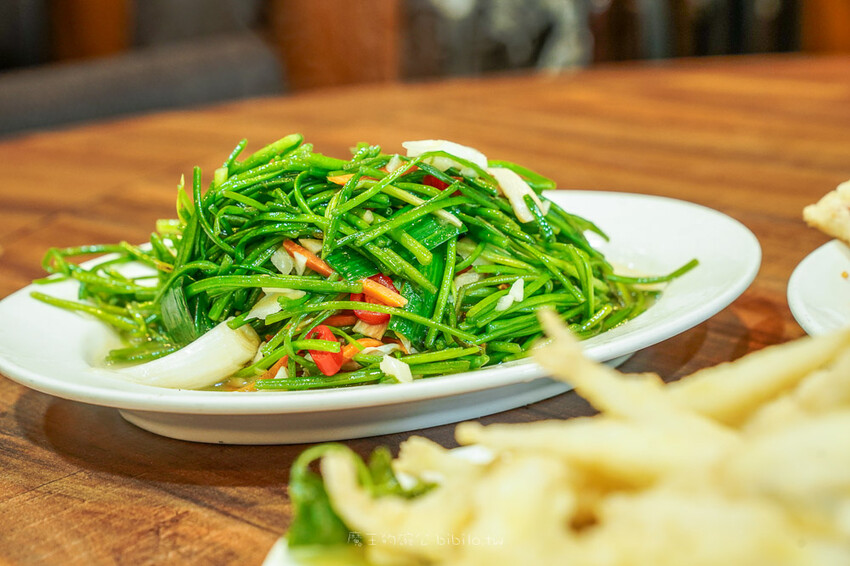 鑊氣強到爆的炒水蓮,我跟樂哥吃一口,眼睛發光異口同聲說這炒水蓮也未免太厲害,水蓮炒到油亮發光,帶有淡淡的蓮花香氣,鮮脆多汁真的很好吃啊~