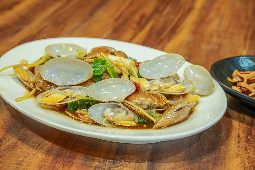 這份炒海瓜子超級下飯,光是醬汁我就不知道沾了多少海鮮吃,辣中帶鮮甜且真的越吃越好吃。