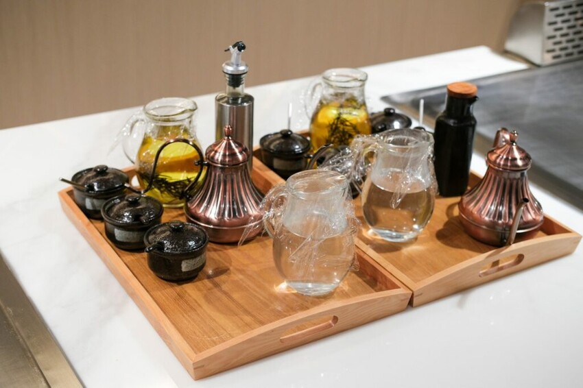 ▼講究食物原味的日式鐵板燒,調味上使用基本的鹽及胡椒,以及能夠提升風味的迷迭香油,醬汁及小菜都是師傅以天然食材手工製作。