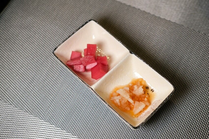 ▼提供兩款酸甜爽口的小菜,吃完後可以跟服務人員續加~