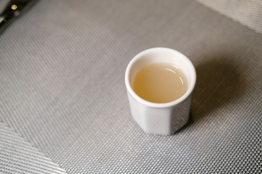 ▼小小一杯的原汁鮮蜆湯,濃縮蜆的滿滿精華,入口後香氣在嘴中環繞,超級喜歡這道 ~