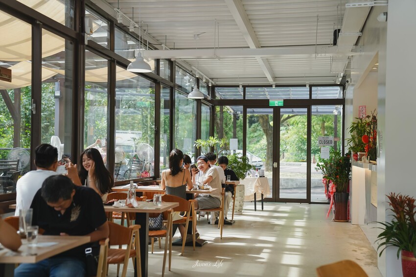 後方的大片透明落地窗的餐廳,拍起來也超美的