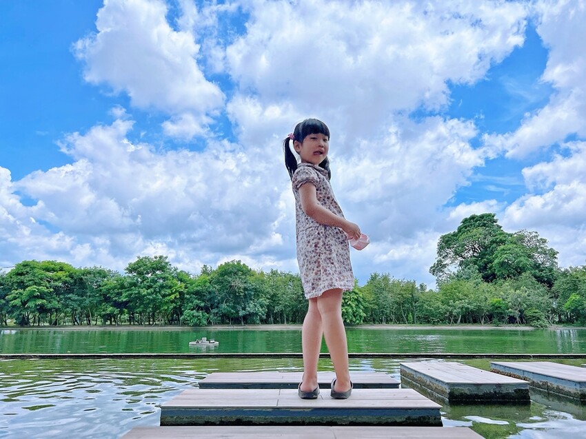 帶著寶貝漫步在園區內,除了可以餵魚之外,池邊雁鴨成群且ˋ不時還會跳入池中戲水著,而在餵飼料的同時,這群可愛鴨子們也會貪吃的靠過來喔!而園區也貼心的設置大沙坑讓小寶貝們可以玩耍,但真心建議一定要避開艷陽高照的時段去玩耍。