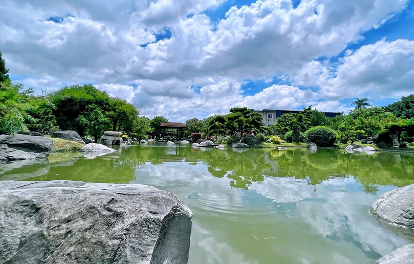再依循著指標就可以走到戶外的園區喔!霖沉香味道森林館佔地超大,大約有5.8公頃,它有著國內最大的沉香景觀日式造景,園區整體是以日式禪風簡約典雅當作主軸,同時擁有一大片景觀生態池,在庭園中種植多達80多種樹種可供觀賞。
