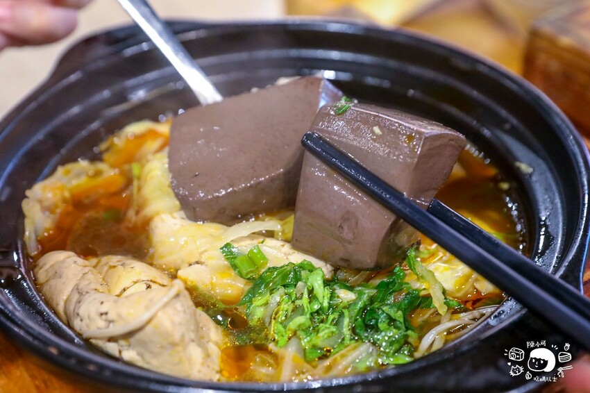 鴨血本身滑Q嫩口,似果凍般的口感,問了店家才知道,老闆本身不喜歡乾扁吸飽湯汁的鴨血,希望客人吃到的是Q彈的口感。